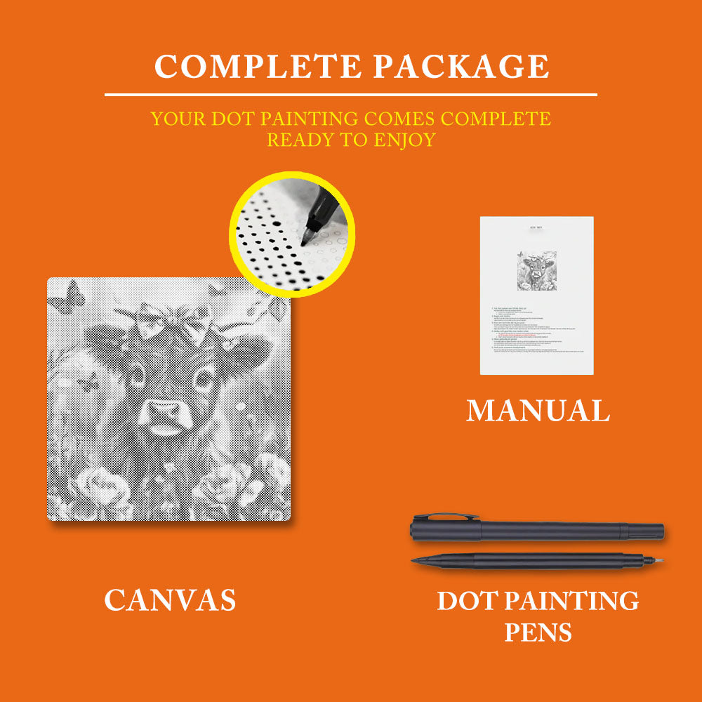 Adorable Highland Calf with Flowers - Dot Painting